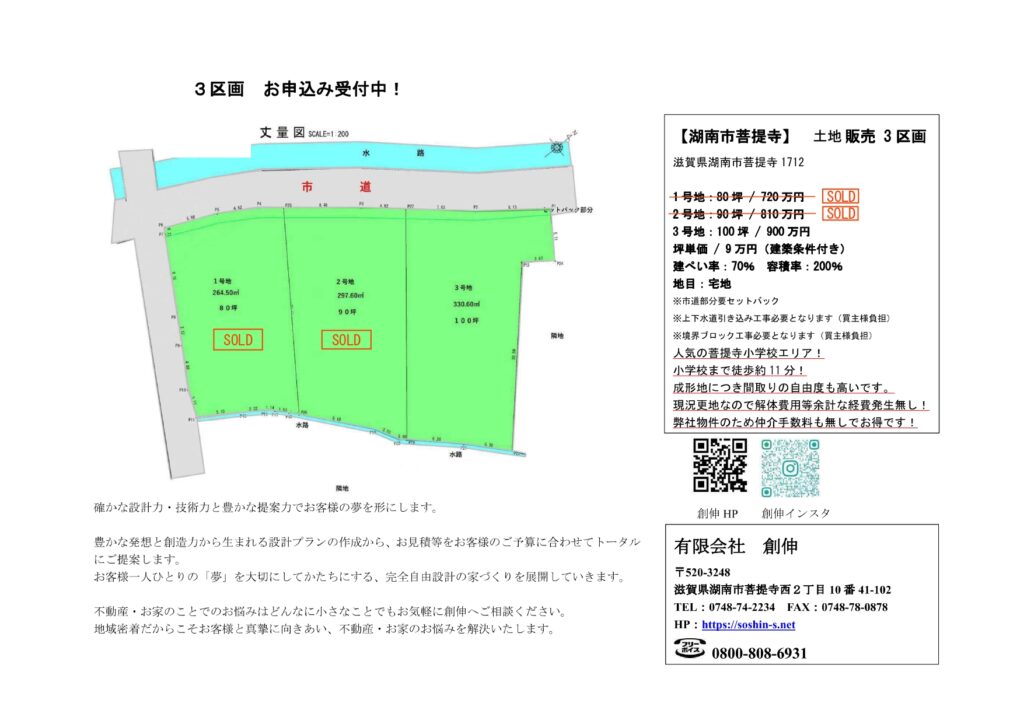 湖南市菩提寺土地3区画中残り2区画 好評販売中!